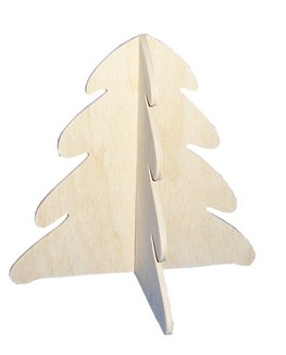 Tento dekoračný stromček je vyrobený z bledej preglejky. Dielce stojana sú ručne vypiľované, čo na rozdiel od laserom vypaľovaných dielcov zaručuje prírodnú bledú farbu hrany. Zároveň je každý stojan jedinečným originálom. Stojan dodávame bez povrchovej úpravy a ako taký je aj veľmi vhodný na individuálne dozdobenie napríklad servítkovou technikou. Táto možnosť je umocnená skutočnosťou, že stromček dodávame rozobratý na dva dielce, pričom montáž je jednoduchá- stačí zasunúť dielce do pripravených drážok.