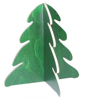 Tento dekoračný stromček je vyrobený z preglejky. Dielce stojana sú ručne vypiľované, čo na rozdiel od laserom vypaľovaných dielcov zaručuje prírodnú bledú farbu hrany. Zároveň je každý stojan jedinečným originálom. Stojan dodávame morený zeleným moridlom a dokončený polyuretánovým lakom. Stromček dodávame  rozobratý na dva dielce, pričom montáž je jednoduchá- stačí zasunúť dielce do pripravených drážok.
