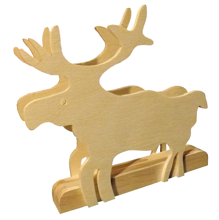 Tento stojan na servítky je vyrobený z brezovej preglejky v kombinácii s masívnym drevom. Dielce stojana sú ručne vypiľované, čo na rozdiel od laserom vypaľovaných dielcov zaručuje prírodnú bledú farbu hrany. Zároveň je každý stojan jedinečným originálom. Stojan dodávame bez povrchovej úpravy a ako taký je aj veľmi vhodný na individuálne dozdobenie.
