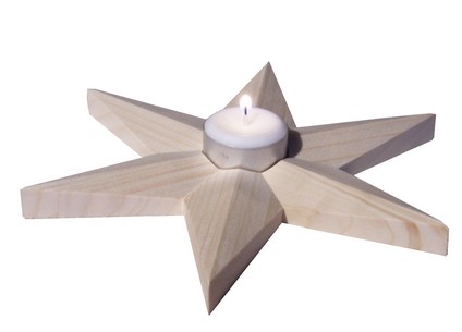 Tento svietnik v tvare hviezdy je vyrobený zo smrekového dreva, jednotlivé ramená hviezdy sú priestorovo tvarované. Výrobok je určený výlučne pre použitie s bežnou čajovou sviečkou v hliníkovej miske s priemerom do 40 mm, pričom nie je možné nechať sviečku horieť bez dozoru.