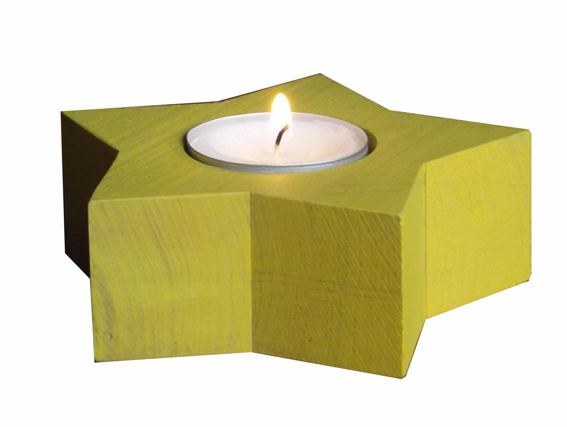 Tento svietnik v tvare hviezdy je vyrobený z jelšového dreva. Výrobok je určený výlučne pre použitie s  bežnou čajovou sviečkou v hliníkovej miske s priemerom do 40 mm, pričom nie je možné nechať sviečku horieť bez dozoru. Povrchová úprava je robená tvrdým voskovým olejom.