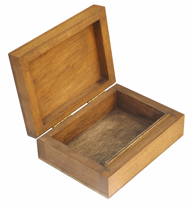 Kazeta je vyrobená zo jelšového dreva v kombinácii s brezovou preglejkou (dno a klapačka). Veko je vyrobené z masívneho dreva. Na rozdiel od mnohých konkurenčných výrobkov umožňuje jeho efektívne zaoblenie, čo samozrejme aj využívame. Kazeta je primárne určená na uloženie balíčka kariet, to však nebráni jej využitiu na uloženie čohokoľvek. Povrchová úprava je robená tvrdým voskovým olejom v odtieni dub antik.