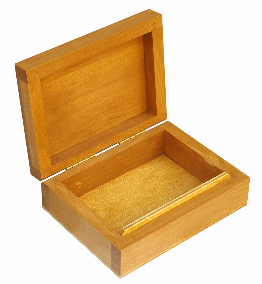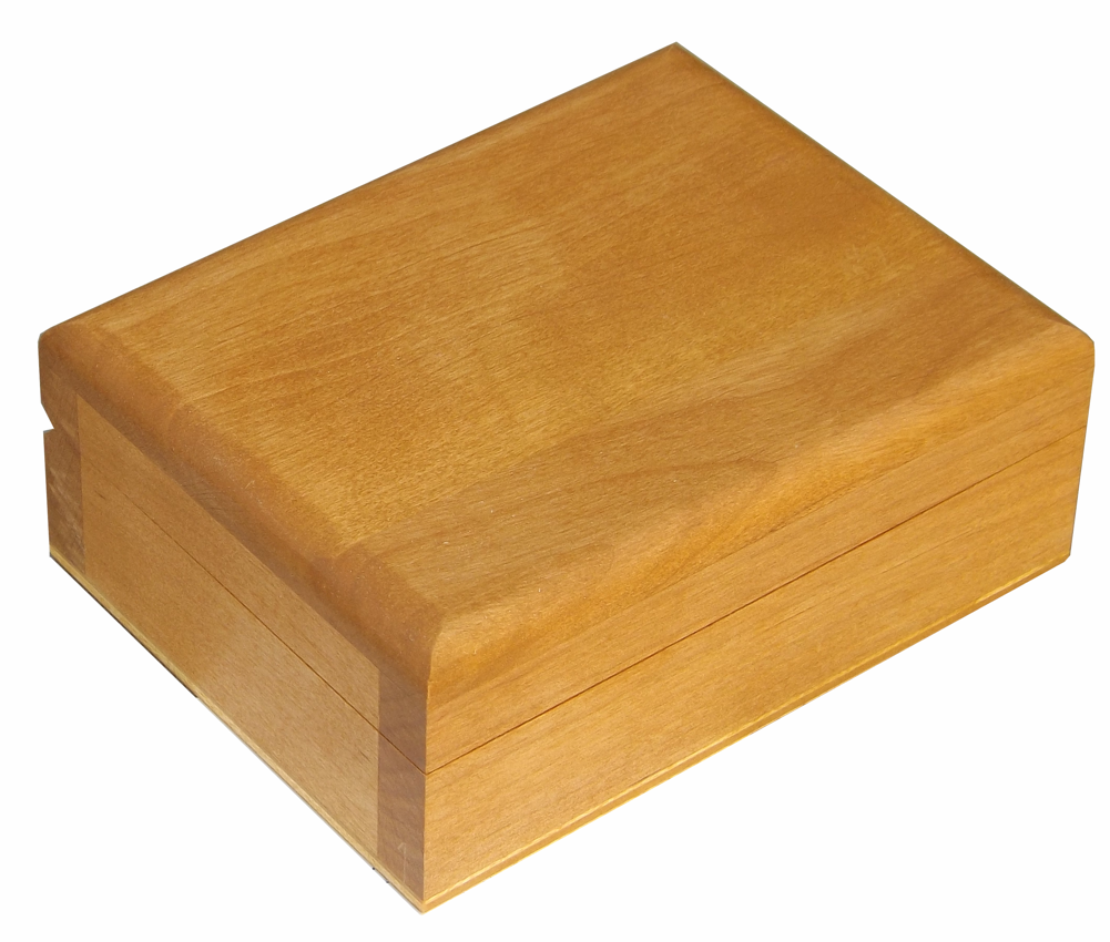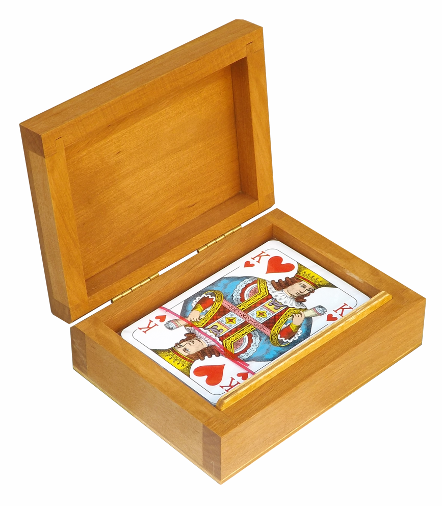 Kazeta je vyrobená zo jelšového dreva v kombinácii s brezovou preglejkou (dno a klapačka). Veko je vyrobené z masívneho dreva. Na rozdiel od mnohých konkurenčných výrobkov umožňuje jeho efektívne zaoblenie, čo samozrejme aj využívame. Kazeta je primárne určená na uloženie balíčka kariet, to však nebráni jej využitiu na uloženie čohokoľvek. Povrchová úprava je robená tvrdým voskovým olejom v odtieni dub svetlý.