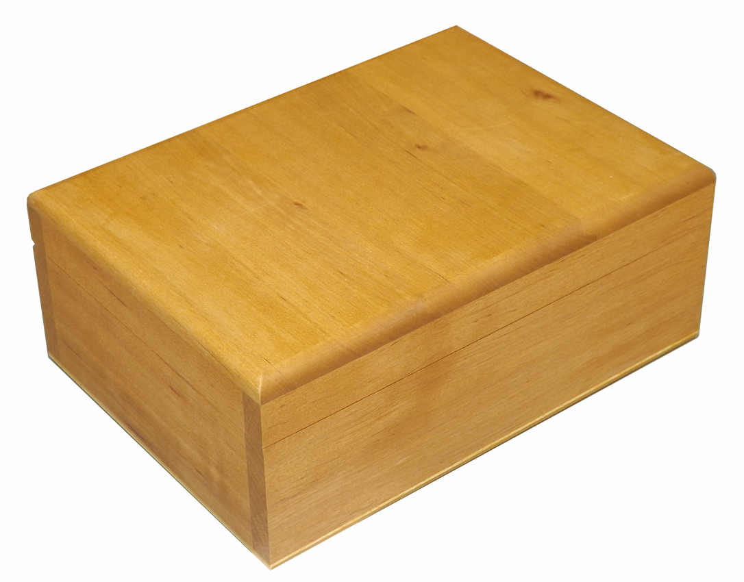 Kazeta je vyrobená zo jelšového dreva v kombinácii s brezovou preglejkou (dno a klapačka). Veko je vyrobené z masívneho dreva. To na rozdiel od mnohých konkurenčných výrobkov umožňuje jeho efektívne zaoblenie, čo samozrejme aj využívame. Kazeta je primárne určená na krabicu kockového cukru. Nič však nebráni jej využitiu aj na iné účely.